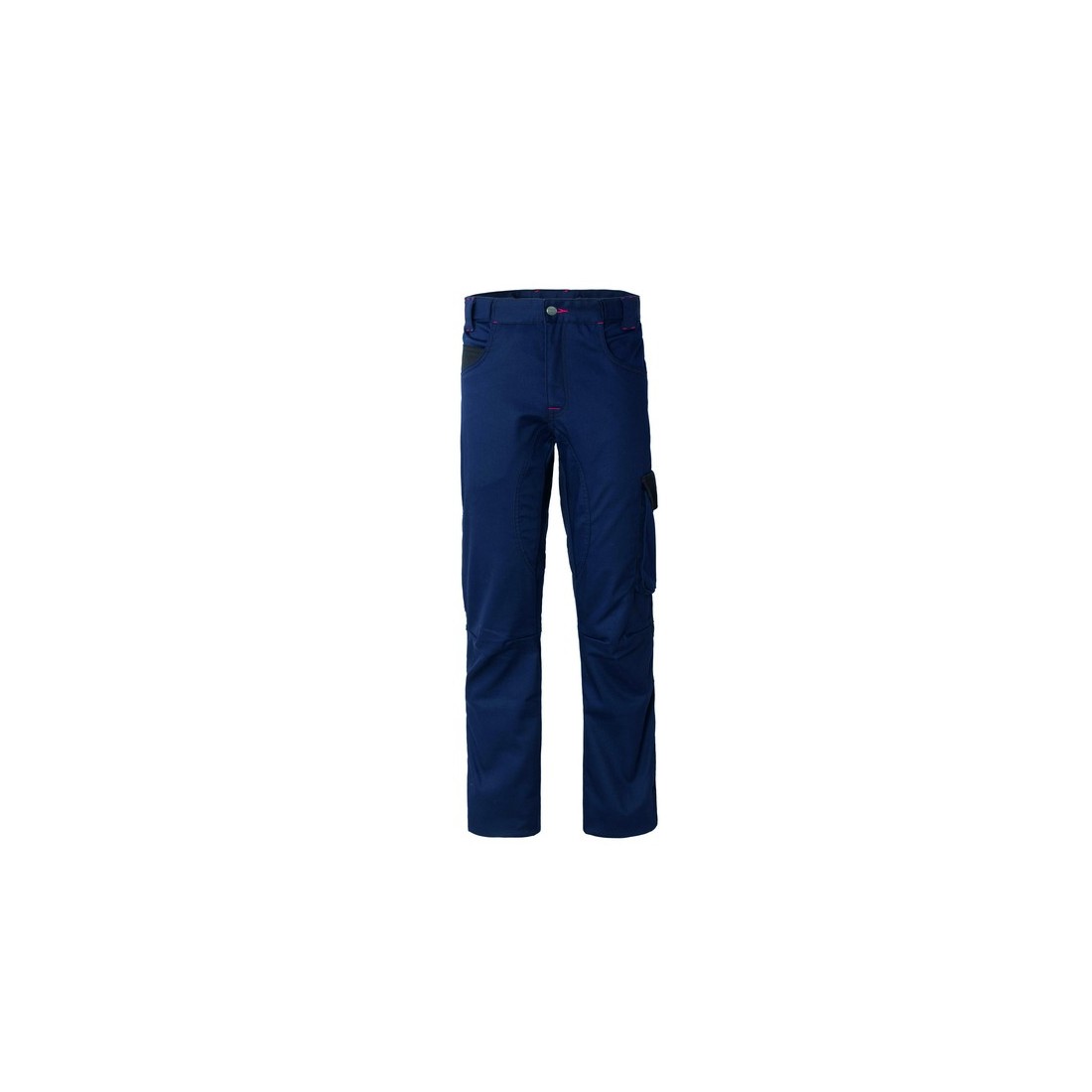 Pantalone da lavoro multistagione con chiusura alla patta con cerniera e bottone in cintura, 2 tasche anteriori interne e 1 piccolo taschino di colore a contrasto a destra, 2 tasche posteriori applicate chiuse con aletta e velcro, 1 tasca laterale con soffietto chiusa con aletta e velcro a destra, 1 tasca laterale multifunzione applicata su gamba sinistra, inserto laterale porta utensili, tessuto di rinforzo al cavallo con tripla cucitura, pences alle ginocchia per il massimo confort, esclusivo elastico in vita, passanti rinforzati, travette varie di colore rosso.